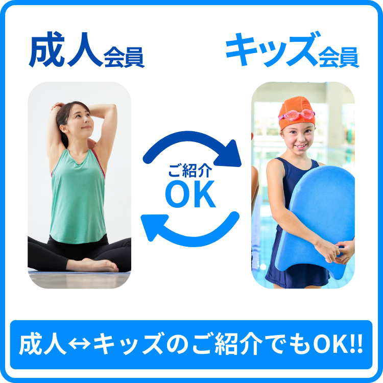 紹介特典は入会キャンペーンとの併用も可能です。この機会にぜひお友達・ご家族をご紹介ください!WEB入会なら手続きもとってもカンタン♪